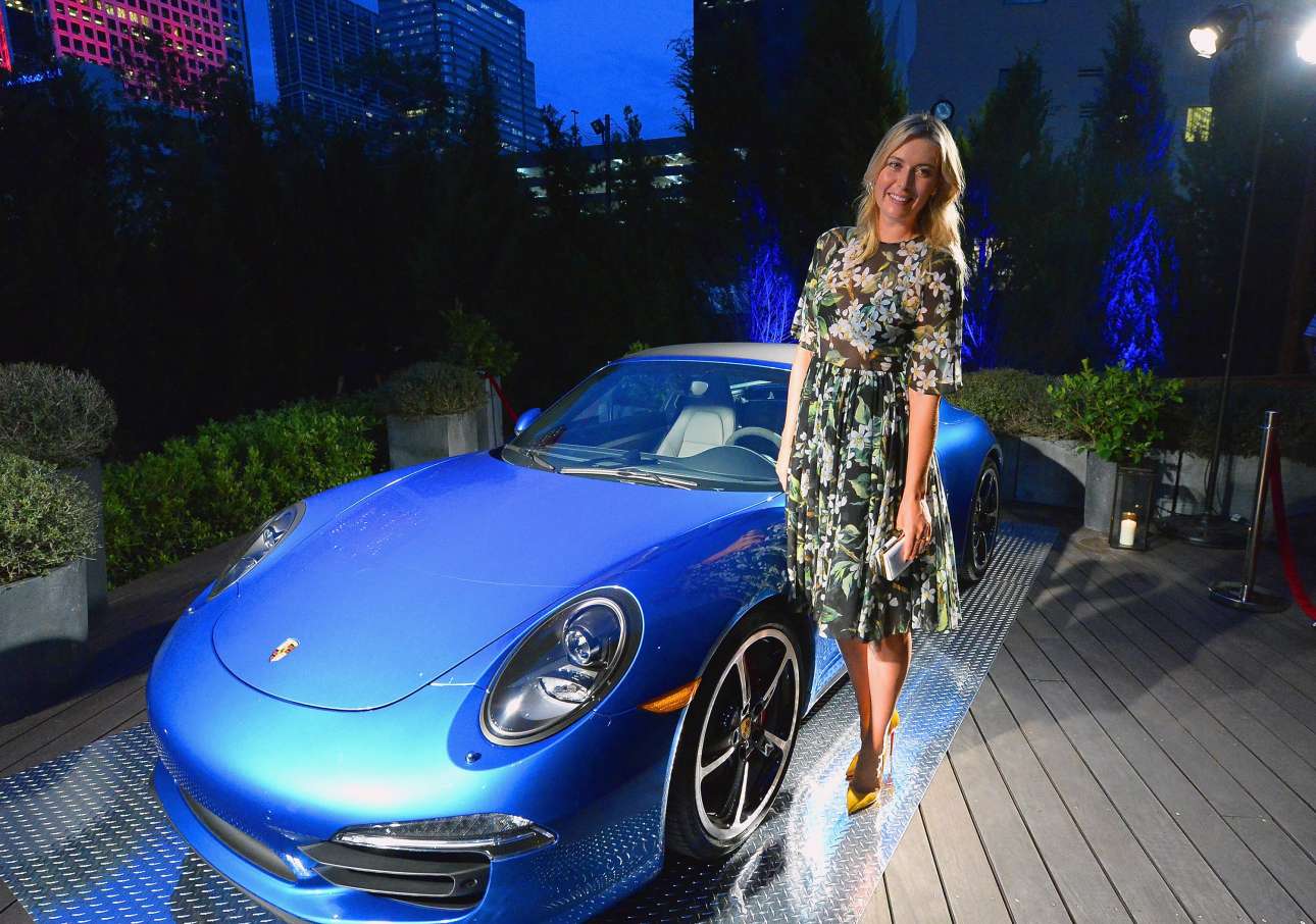 Η Porsche τη διάλεξε για πρωταγωνίστρια του σποτ που δημιούργησε για την προώθηση του νέου διαδικτυακού τόπου της. Τα πολυτελή αυτοκίνητά της δίνουν τροφή για όνειρα, όπως περηφανεύεται η διαφήμιση, ακριβώς όπως και η πανύψηλη αθλήτρια. Την Porsche 911 που οδηγεί η ίδια η Σαράποβα (η οποία λατρεύει τα γερμανικά αυτοκίνητα), της τη χάρισε η αυτοκινητοβιομηχανία.