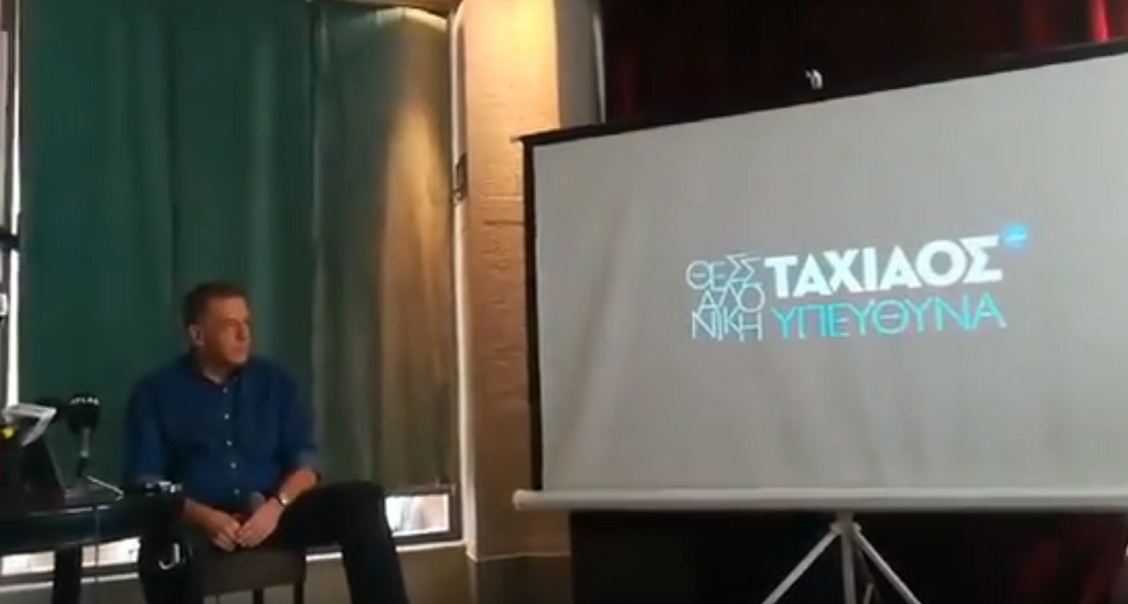 Ο Νίκος Ταχιάος, υποψήφιος δήμαρχος Θεσσαλονίκης με τη Νέα Δημοκρατία, παρουσίασε την Παρασκευή το έμβλημα του συνδυασμού του σε μια κάπως χαλαρή συνέντευξη Τύπου σε καφέ κοντά στον Λευκό Πύργο.