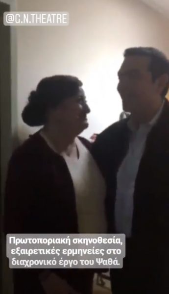 Γενικά ο κ. Τσίπρας και η κυρία Μπαζιάνα είναι θεατρόφιλοι. Στις 3 Νοεμβρίου είχαν πάει στο «Κουν» για να δουν το θεατρικό «Η Επανένωση της Βόρειας με τη Νότια Κορέα» (εδώ), τώρα επέλεξαν μια πιο συμβατική παράσταση, έστω και αν ο σκηνοθέτης Αρης Μπινιάρης «πειράζει» αρκετά το έργο του Ψαθά.