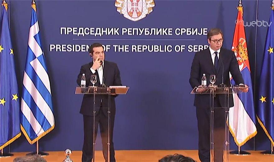 O Τσίπρας με τα χέρια στην τσέπη ενώ μιλάει ο πρόεδρος της Σερβίας