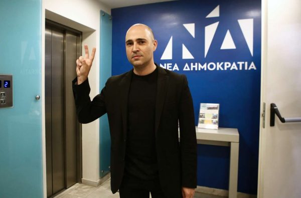 Ο κ. Μπογδάνος έσπευσε στα γραφεία του κόμματος της αξιωματικής αντιπολίτευσης νωρίς το βράδυ της Παρασκευής λίγο πριν από την ανακοίνωση των αποτελεσμάτων για τον β’ γύρο των αυτοδιοικητικών εκλογών και πόζαρε κάνοντας το σήμα της νίκης.