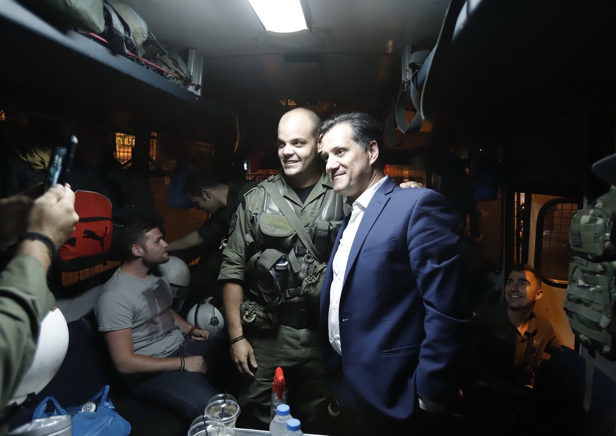 Ετσι, το βράδυ της Τετάρτης, ο Αδωνις Γεωργιάδης έκανε ρελάνς. Οχι μόνο πήγε στην περιοχή αλλά μπήκε και στην κλούβα των ΜΑΤ που σταθμεύει στο Πολυτεχνείο. Μάλιστα ο αντιπρόεδρος της ΝΔ μπήκε στην κλούβα για να συγχαρεί αυτούς τους, όπως τους αποκάλεσε, «ήρωες της δημοκρατίας».