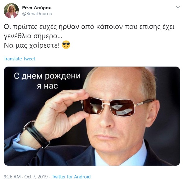 Η Ρένα Δούρου μας υπενθυμίζει ότι έχει γενέθλια την ίδια μέρα με τον Πούτιν