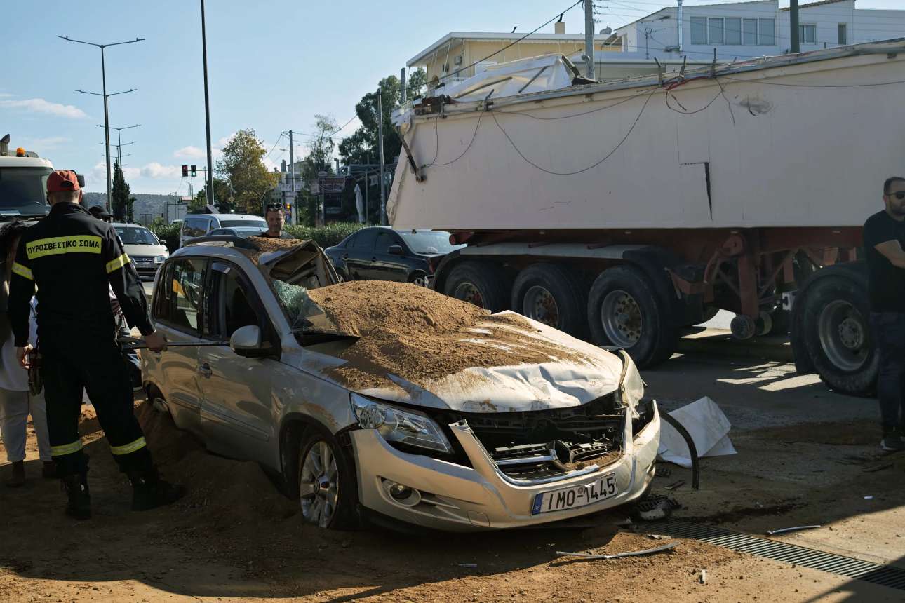 Μάρτυρες ενός τρομακτικού τροχαίου έγιναν νωρίς το πρωί της Τετάρτης διερχόμενοι οδηγοί και περαστικοί στη Βάρης-Κορωπίου, στα Βλάχικα, όταν νταλίκα ανετράπη στο ρεύμα προς Βούλα και κατέληξε στην κυριολεξία πάνω σε σταθμευμένο ΙΧ.