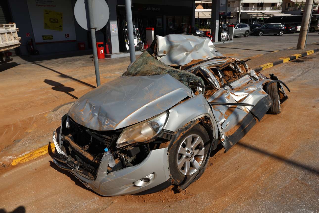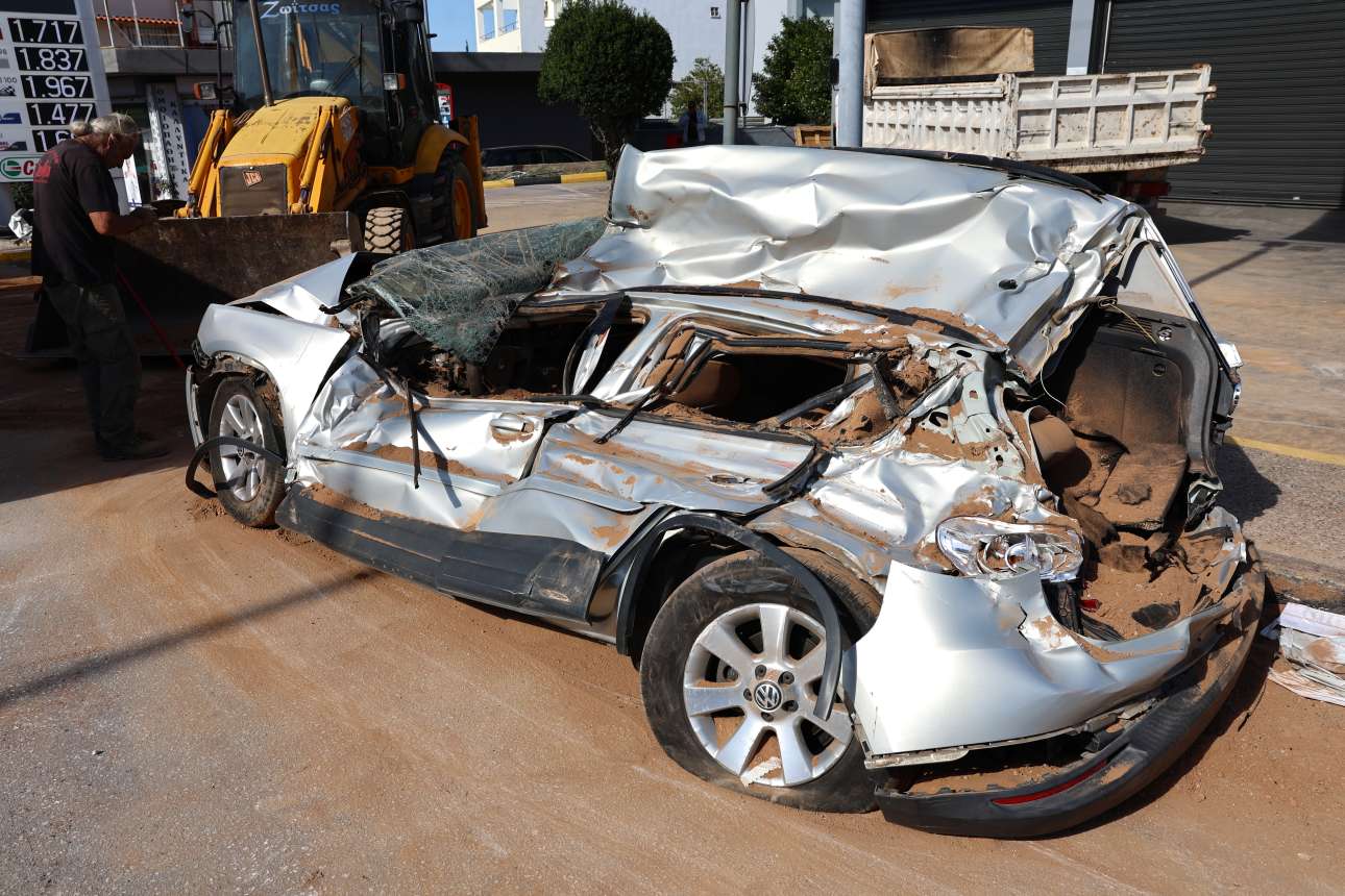 Από το βάρος της νταλίκας και του φορτίου της, το αυτοκίνητο που ήταν παρκαρισμένο κοντά σε πρατήριο υγρών καυσίμων, καταστράφηκε ολοσχερώς (φωτογραφίες κάτω), χωρίς ευτυχώς να υπάρξουν τραυματισμοί.
