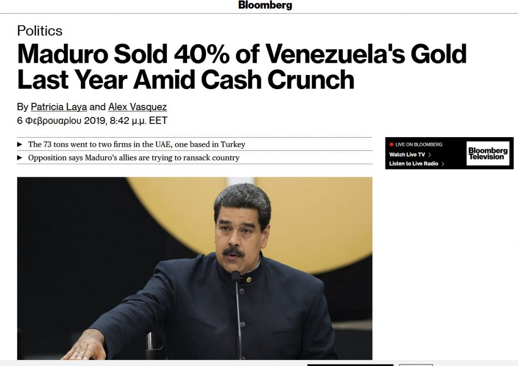 Bloomberg: Ο Μαδούρο πούλησε το 40% των αποθεμάτων χρυσού της χώρας