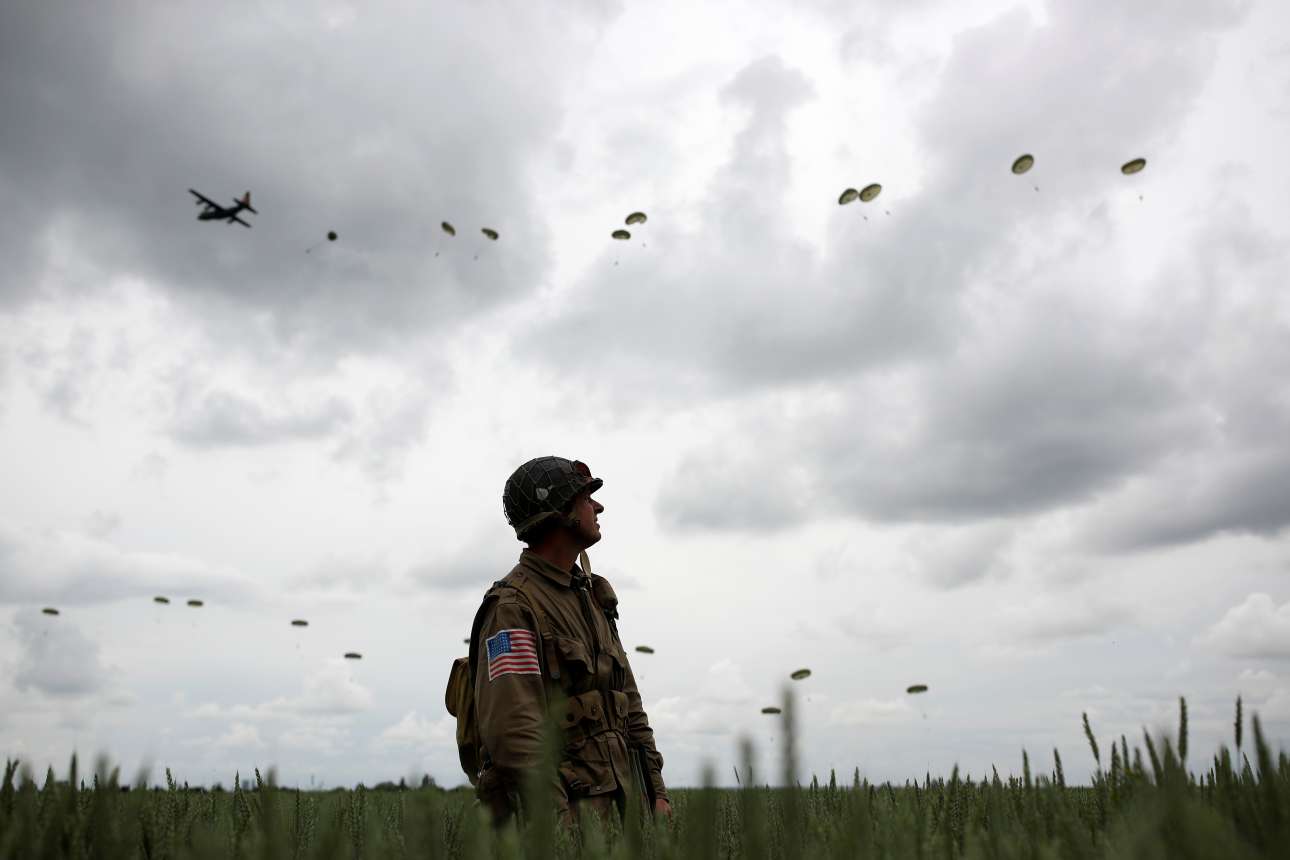 «Ωραία πτήση, ωραίο άλμα, όλα ήταν τέλεια», είπε ο πρώην αλεξιπτωτιστής της 101ης αερομεταφερόμενης μεραρχίας του αμερικανικού στρατού, κατά την προσγείωσή του σε ένα χωράφι στα βόρεια της κοινότητας Καρεντάν. Ο βετεράνος, με το αλεξίπτωτο στα χρώματα της αμερικανικής σημαίας, που φορούσε το κράνος της μονάδας του και σκούρα γυαλιά ηλίου, έκανε το σήμα της νίκης χαιρετίζοντας το συγκεντρωμένο πλήθος που παρακολουθούσε με ενθουσιασμό.