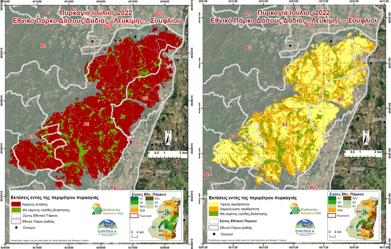 Μικρότερη από ό,τι είχε αρχικά εκτιμηθεί φαίνεται να είναι η περιβαλλοντική καταστροφή που προκάλεσε η πυρκαγιά στο Εθνικό Πάρκο της Δαδιάς, όπως προκύπτει από την επεξεργασία δορυφορικών εικόνων πολύ υψηλής χωρικής ανάλυσης από τον Οργανισμό Φυσικού Περιβάλλοντος και Κλιματικής Αλλαγής (ΟΦΥΠΕΚΑ).