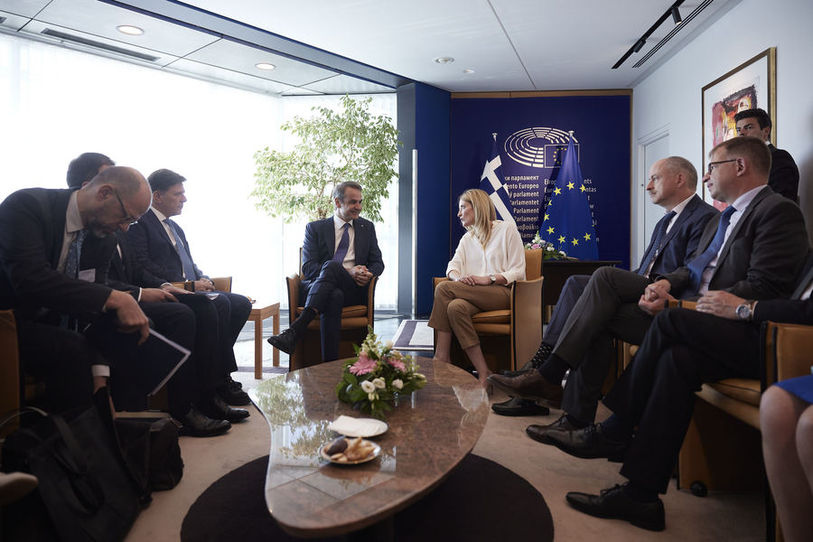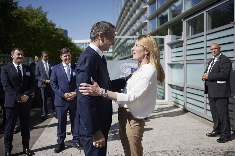 Νωρίτερα, ο κ. Μητσοτάκης είχε συνάντηση με την πρόεδρο του Ευρωκοινοβουλίου Ρομπέρτα Μετσόλα (φωτογραφία κάτω).