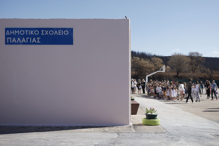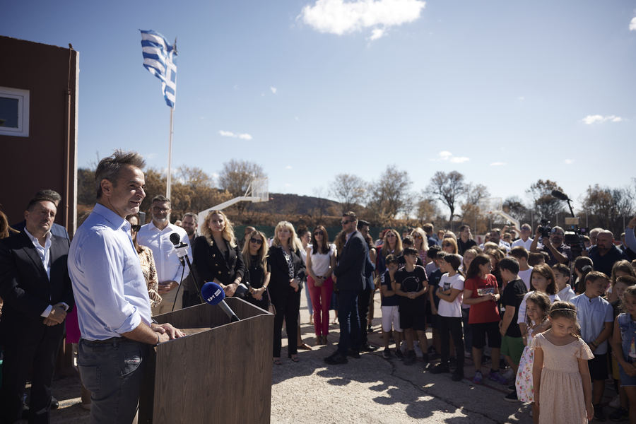 Στον χαιρετισμό του στο Δημοτικό Σχολεία Παλαγίας, ο Πρωθυπουργός στάθηκε αρχικά στην αποκατάσταση του σχολείου μέσα σε μόλις λίγες εβδομάδες. Πέραν των επισκευών, οι οποίες ολοκληρώθηκαν σε διάστημα μικρότερο των τριών εβδομάδων χάρη σε χρηματοδότηση της ΔΕΠΑ Εμπορίας ώστε το σχολικό συγκρότημα να υποδεχτεί μαθητές και εκπαιδευτικούς την πρώτη μέρα της σχολικής χρονιάς, το επόμενο διάστημα προβλέπεται να υλοποιηθούν εργασίες ενεργειακής αναβάθμισης του κτιρίου, που θα περιλαμβάνουν εγκατάσταση θερμοπρόσοψης και αντικατάσταση των κουφωμάτων. Παράλληλα, μεταξύ άλλων, ήδη σχεδιάζεται η κατασκευή γυμναστηρίου και βιβλιοθήκης.