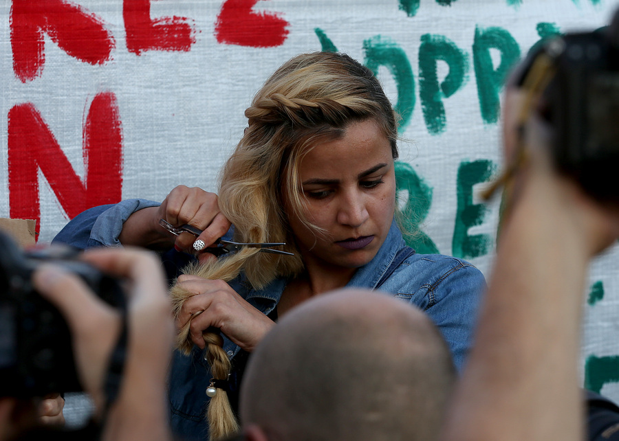Διαδήλωση στο Σύνταγμα για τη Μαχσά Αμινί – Γυναίκες έκοψαν τα μαλλιά τους