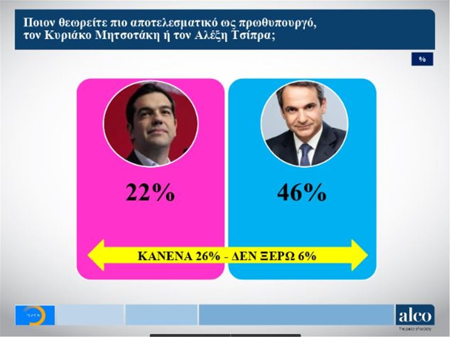 Σαφέστατη είναι η υπεροχή Μητσοτάκη και στο ερώτημα για τον πιο αποτελεσματικό πρωθυπουργό.
