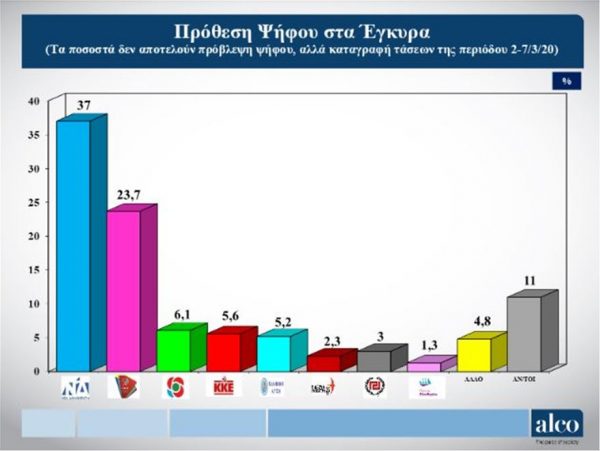 Αυτό προκύπτει από την δημοσκόπηση της εταιρείας ALCO που παρουσιάστηκε στο κεντρικό δελτίο Ειδήσεων του OPEN.