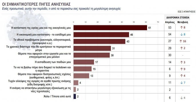 Η ανησυχία για τον κορονοϊό ξεπερνά τους φόβους για την οικονομία και αγγίζει τα επίπεδα του Μαρτίου-Απριλίου.
