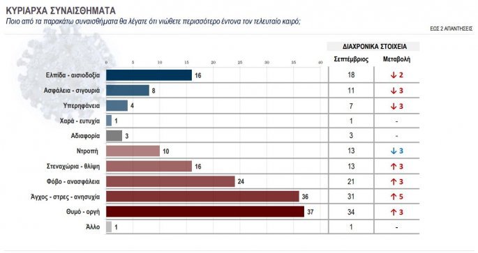 Στην έρευνα οι πολίτες απαντούν για την πορεία της χώρας, εκφράζουν τα κυρίαρχα συναισθήματα που τους διακατέχουν στην καραντίνα, ενώ κρίνουν την κυβέρνηση, αλλά και τα πρόσωπα-κλειδιά της πανδημίας, όπως είναι ο Νίκος Χαρδαλιάς και ο Σωτήρης Τσιόδρας.