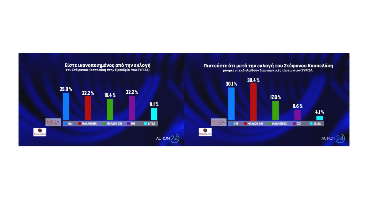 Συγκεκριμένα, ένα ποσοστό της τάξης του 68,5% εξ αυτών δήλωσε ότι μπορεί να εκδηλωθούν διασπαστικές τάσεις στον ΣΥΡΙΖΑ μετά την εκλογή Κασσελάκη.