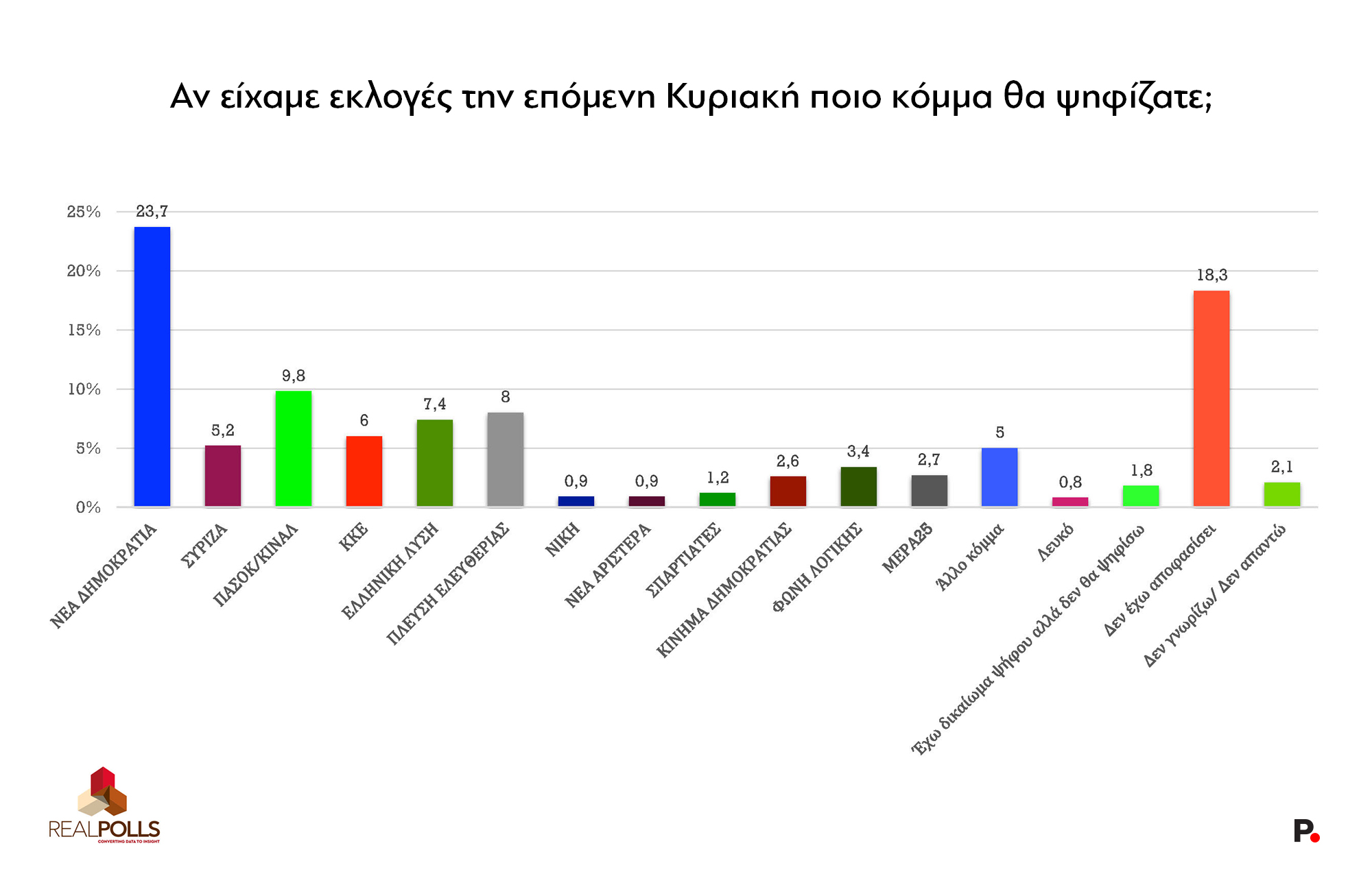 • Μεταβλητές στάθμισης: Ηλικία, Φύλο, περιφέρεια ψήφου, ψήφος στις βουλευτικές εκλογές του 2023