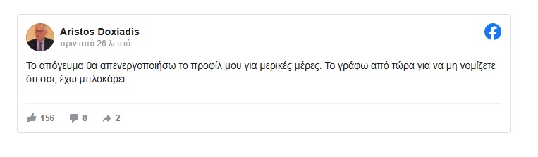Λίγες ώρες αργότερα, μάλιστα, ο ίδιος συνέχισε το σίριαλ, ανακοινώνοντας, μέσω facebook, ότι σκοπεύει να απενεργοποιήσει τον λογαριασμό του