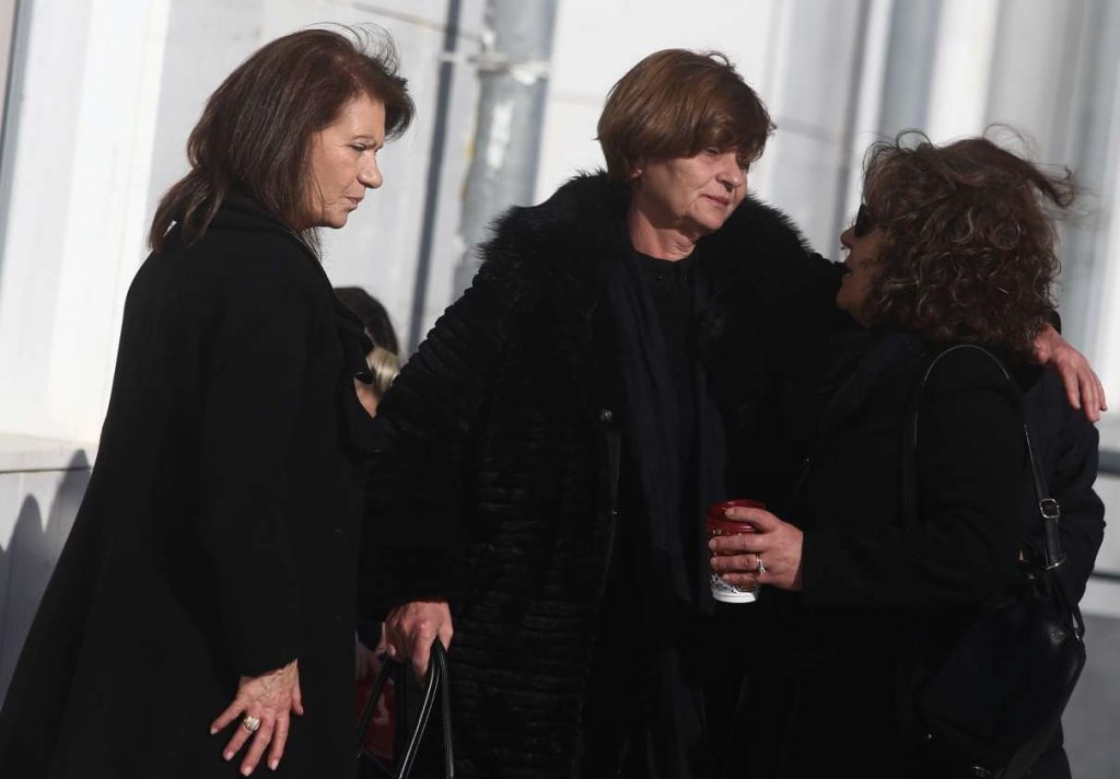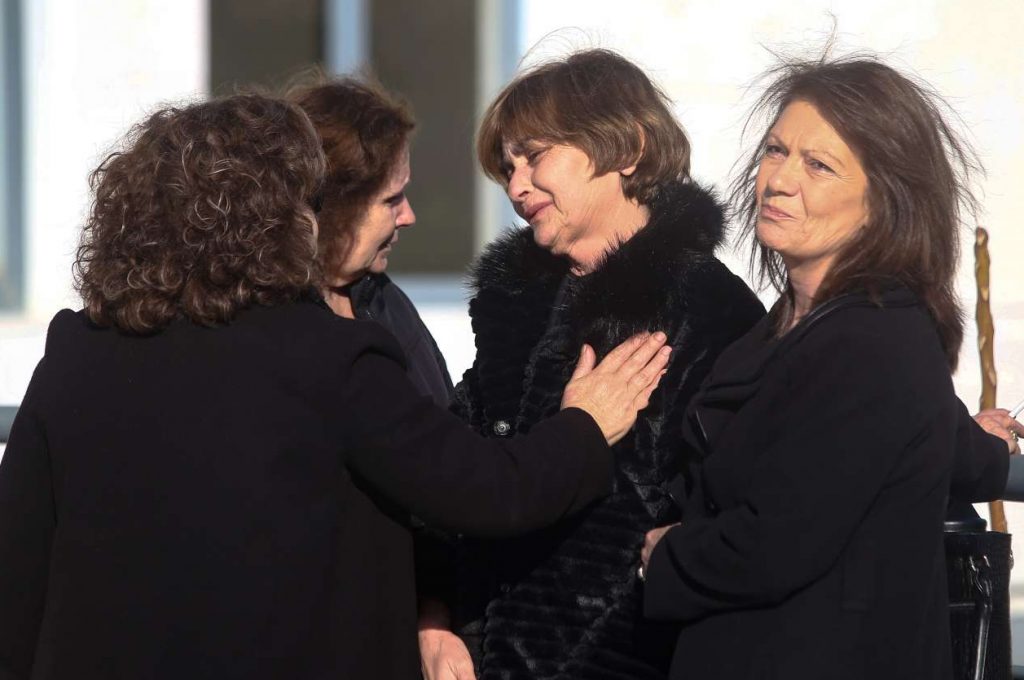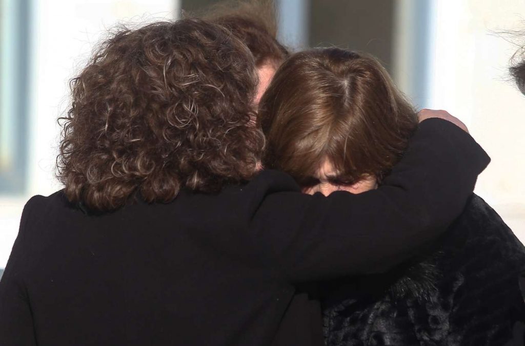 Ντυμένες και οι δύο στα μαύρα, με ένα τσιγάρο στο χέρι, οι δύο χαροκαμένες μάνες αγκαλιάστηκαν έξω από το δικαστήριο σε μία σπαρακτική στιγμή.