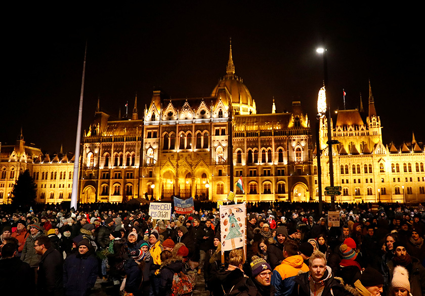 Περίπου 15.000 άνθρωποι αψήφησαν το δριμύ κρύο και κατέβηκαν στους δρόμους και στις λεωφόρους της πρωτεύουσας της Ουγγαρίας ώστε να διαμαρτυρηθούν για την ψήφιση δύο νέων νόμων. Ο ένας θέτει ουσιαστικά τη δικαστική εξουσία υπό τον έλεγχο της εκτελεστικής, ενώ ο άλλος, ένας «νόμος δουλείας» σύμφωνα με τους επικριτές του, επιτρέπει στους εργοδότες να απαιτούν από τους υπαλλήλους τους να εργάζονται έως και 400 ώρες παραπάνω τον χρόνο, με στόχο την τόνωση της παραγωγικότητας.