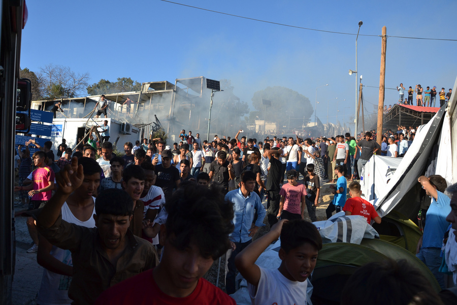 Για τη Μόρια είπε ότι «εύκολα μπορεί να υπάρξει νέα ανάφλεξη». Σχετικά με τη φωτιά και τα επεισόδια είπε ότι «άλλοι μιλούν για κάποια Αφγανή που προσπαθούσε να μαγειρέψει και κάηκε και άλλοι μιλούν για βραχυκύκλωμα».