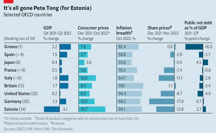 Σε μια χρονιά με τον πληθωρισμό 10% σε ετήσια βάση, σε όλο τον αναπτυγμένο κόσμο, να έχει περικόψει τα εισοδήματα των νοικοκυριών, ορισμένες χώρες τα έχουν πάει αρκετά καλά και άλλες λιγότερο.