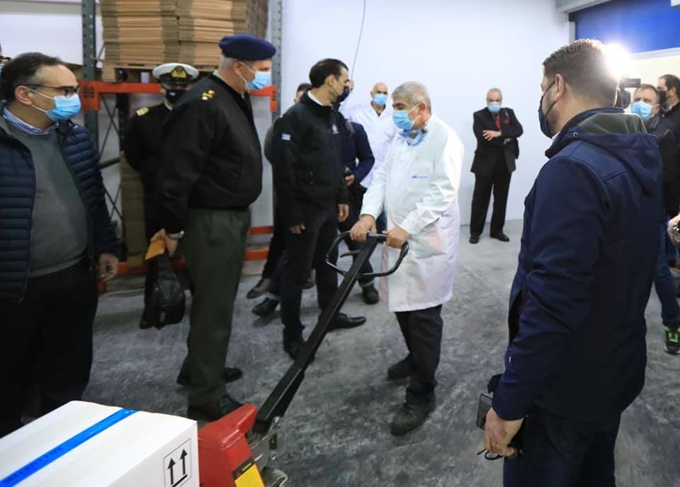 Η πρώτη παρτίδα των 9.750 δόσεων εμβολίων κατά της Covid-19 από τις εταιρείες Pfizer-BioΝTech, βρίσκεται από νωρίς το πρωί του Σαββάτου στην Αθήνα και παραδόθηκε στον χώρο αποθήκευσης παρουσία του υφυπουργού Πολιτικής Προστασίας και Διαχείρισης Κρίσεων, Νίκου Χαρδαλιά, του υφυπουργού Υγείας, Βασίλη Κοντοζαμάνη και του γενικού γραμματέα Πρωτοβάθμιας Φροντίδας Υγείας, Μάριου Θεμιστοκλέους.