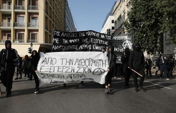 Σε μια προσπάθεια να απομονωθεί, έστω συμβολικά, το μπλοκ των αντιεξουσιαστών από την κεντρική διαδήλωση, οι μαθητές πορεύτηκαν λίγα μέτρα πιο πίσω ώστε να μην υπάρχει η σύνδεση. Ομως σε κάθε περίπτωση, με την εμφατική τους εμφάνιση οι αντιεξουσιαστές «καπέλωσαν» τη διαδήλωση, εν αναμονή μάλιστα και της απογευματινής πορείας.