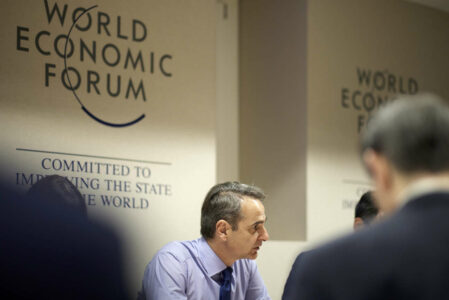 «Ο πρωθυπουργός, Κυριάκος Μητσοτάκης, βρίσκεται στο Νταβός της Ελβετίας για να συμμετάσχει σήμερα και αύριο στο Παγκόσμιο Οικονομικό Φόρουμ. Θα έχει την ευκαιρία, τόσο στις δημόσιες τοποθετήσεις του, όσο και τις κατ’ ιδίαν επαφές του, να αναδείξει: