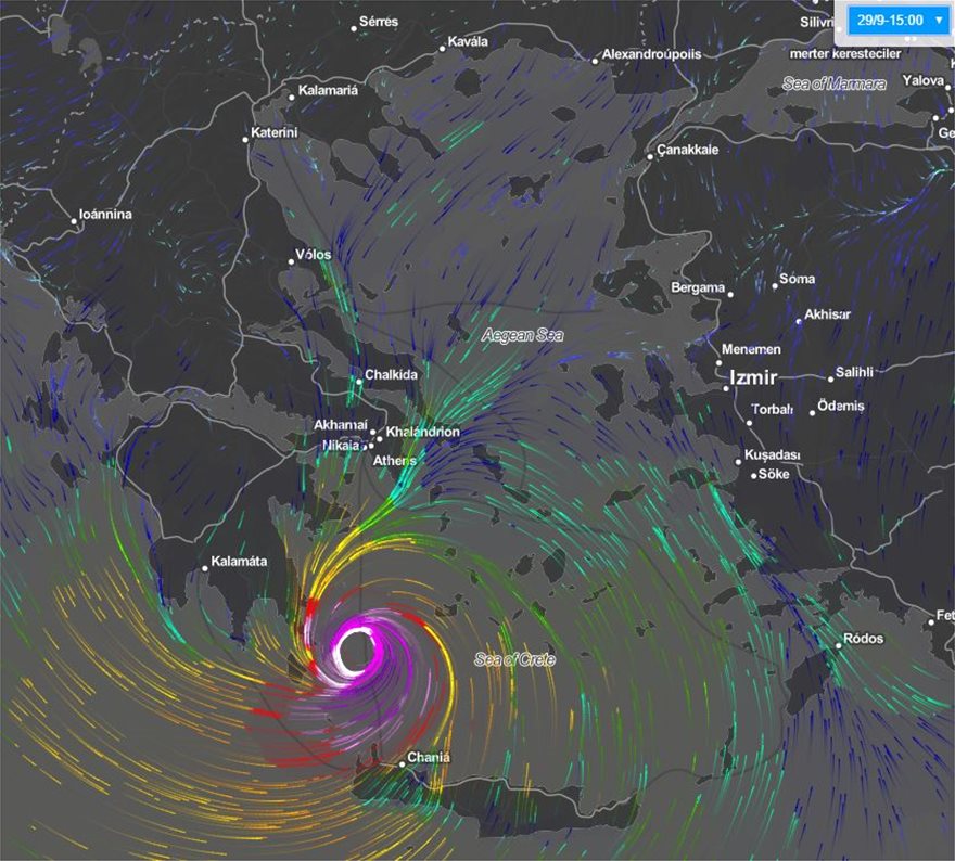 Δείτε σε φωτογραφίες την πορεία που αναμένεται να ακολουθήσει ο «Ζορμπάς» σαρώνοντας το Αιγαίο.