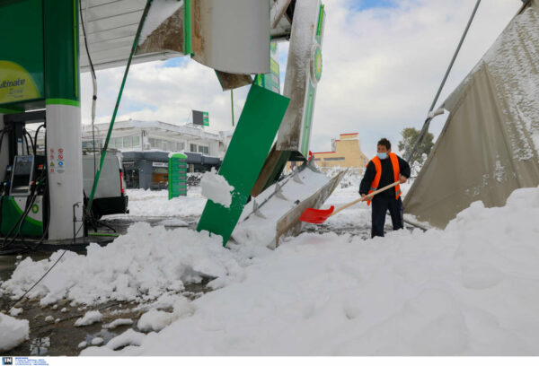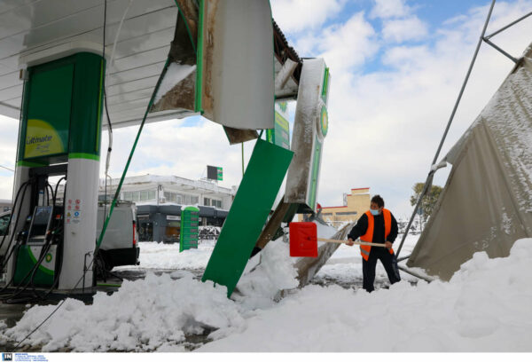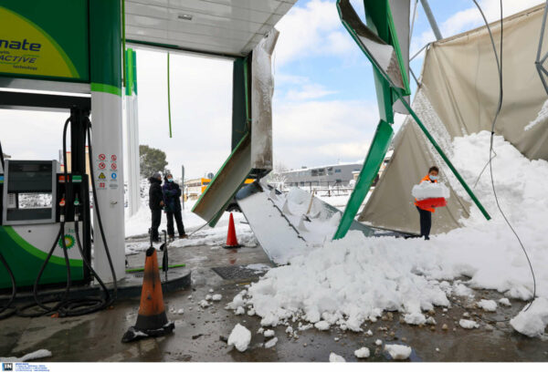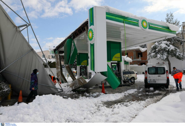Κατέρρευσε στέγαστρο σε βενζινάδικο από το βάρος του χιονιού [εικόνες&βίντεο]