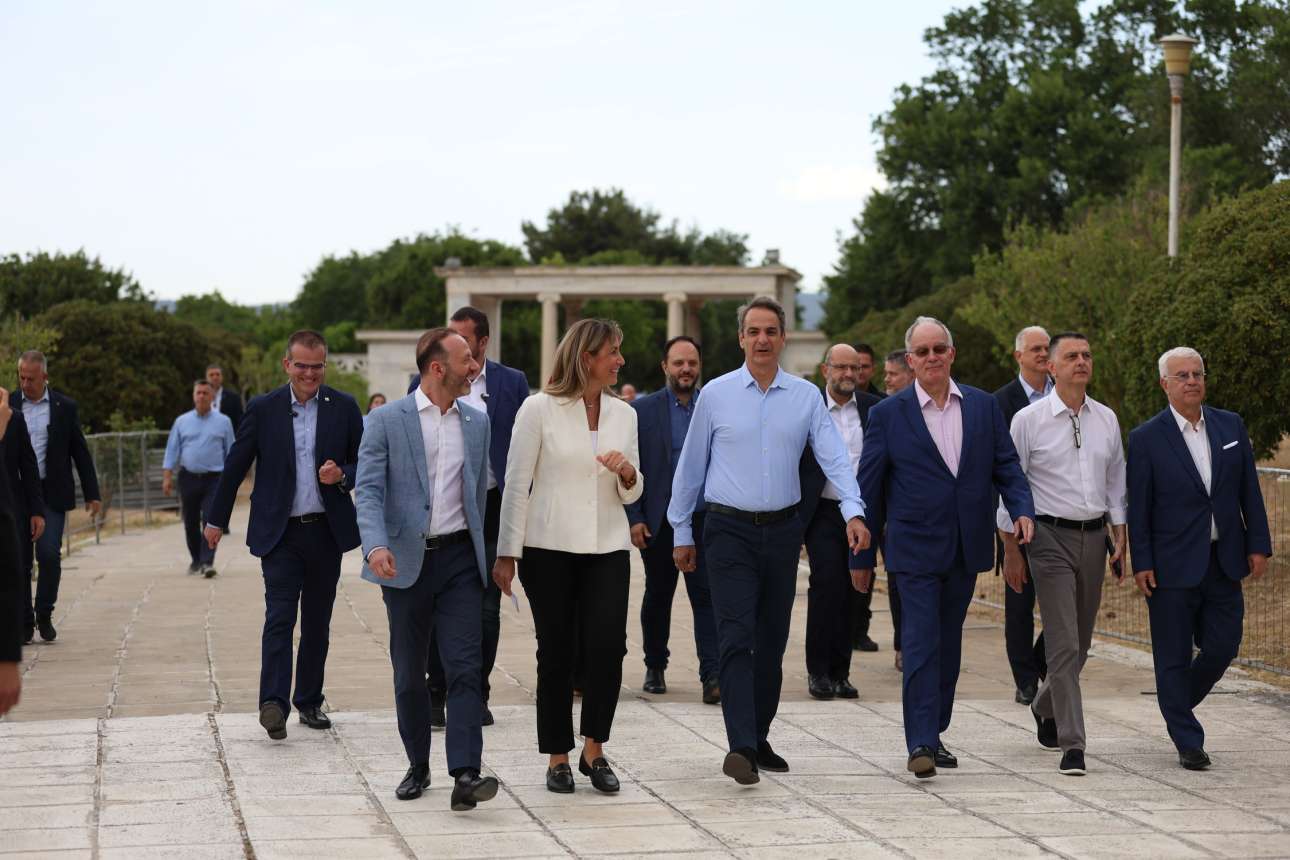 Ο Πρωθυπουργός ξεναγήθηκε στους εξωτερικούς χώρους του Κυβερνείου από βουλευτές της ΝΔ και τον πρόεδρο του συλλόγου «Φίλοι του Κυβερνείου» Νίκο Καρακώστα, οι οποίοι τον ενημέρωσαν και για την ιστορία του κτιρίου.