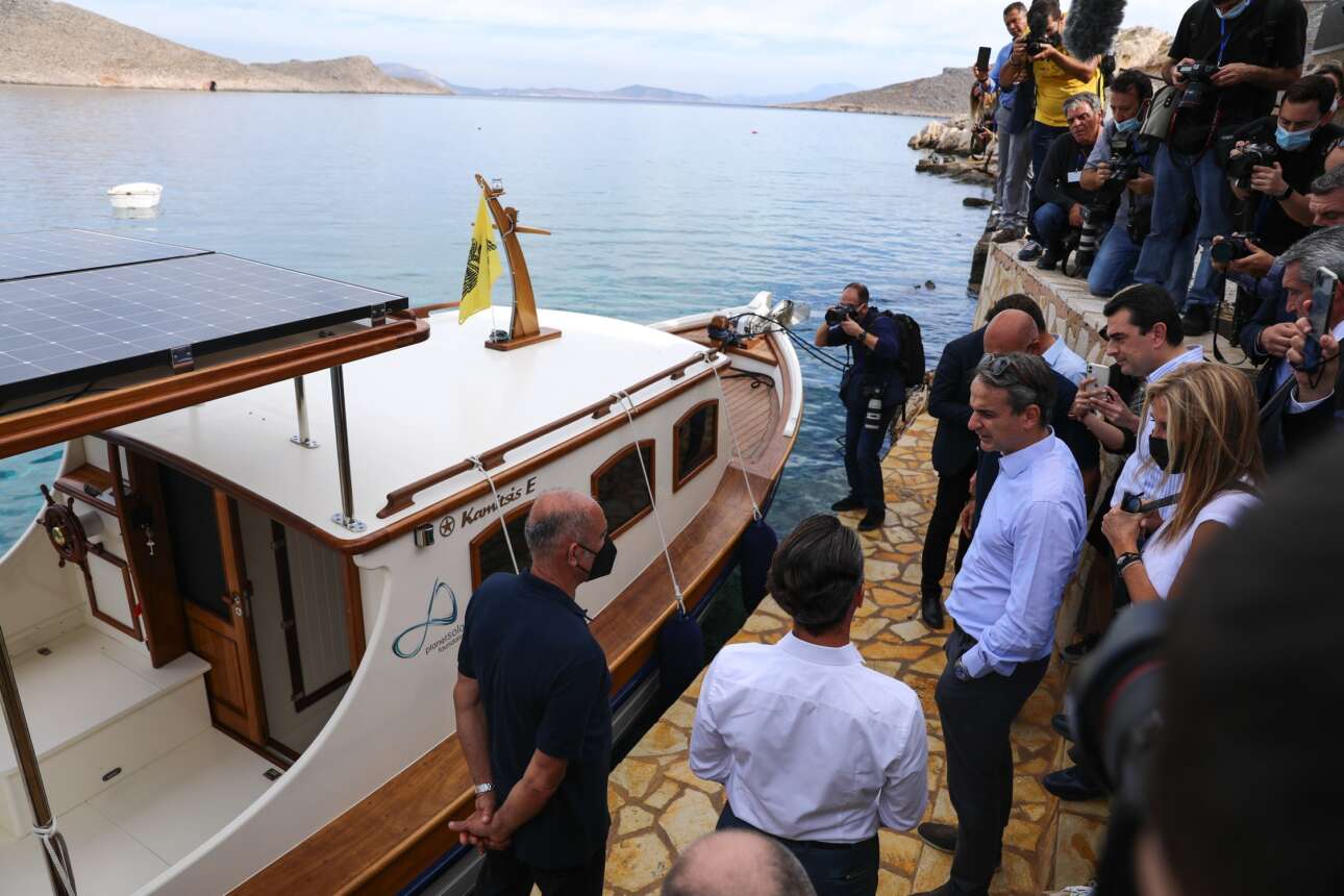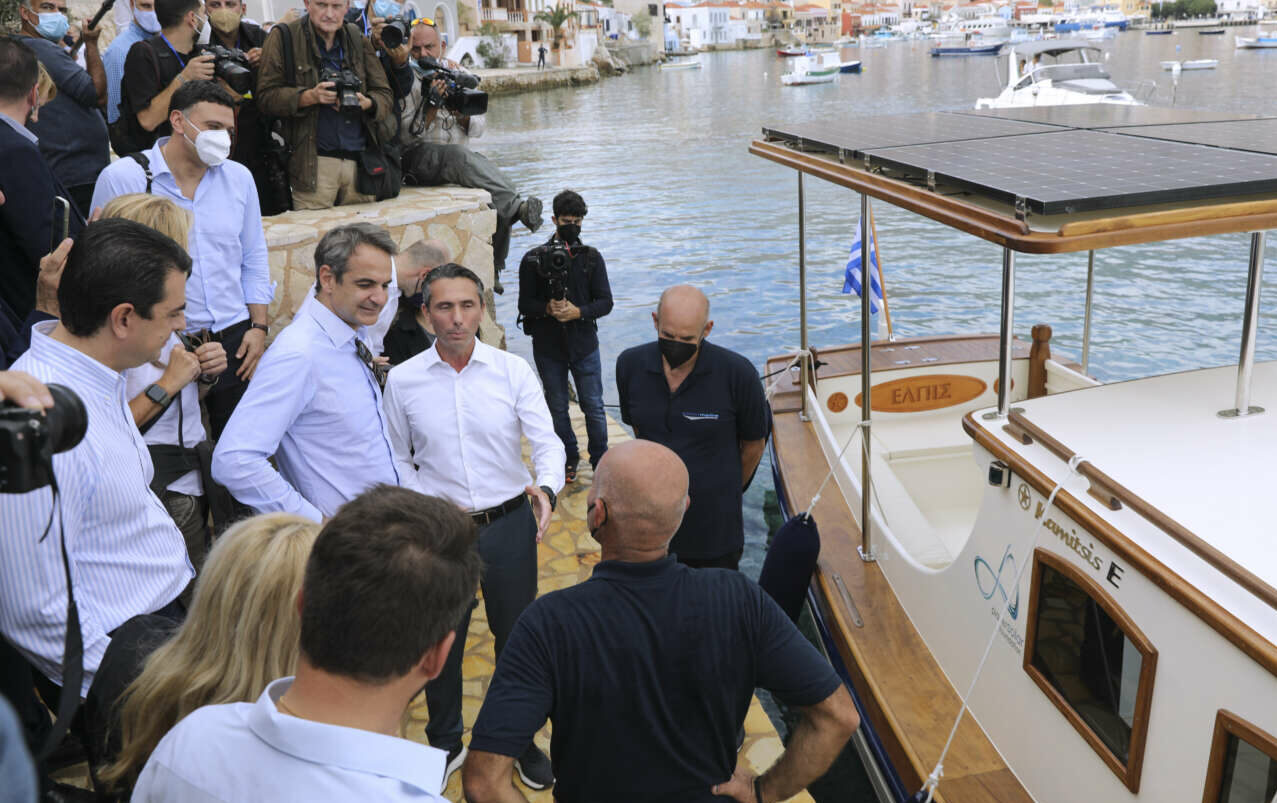 Χάλκη: Εκλεψε την παράσταση το ηλεκτροκίνητο καΐκι που μετέφερε τον Πρωθυπουργό
