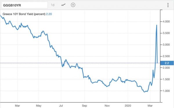 Μεγάλη ανάσα στα ελληνικά ομόλογα έδωσε η επικών διαστάσεων απόφαση της Ευρωπαϊκής Κεντρικής Τράπεζας να τα συμπεριλάβει στο έκτακτο πρόγραμμα παρέμβασης ύψους 750 δισ. ευρώ, για τον κορονοϊό (εδώ).