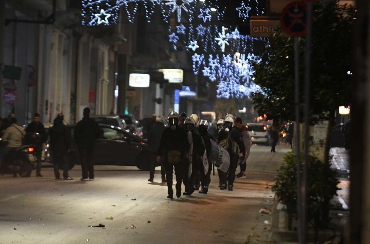 Λίγο αργότερα άρχισαν να σημειώνονται επεισόδια στα Εξάρχεια. Νεαροί πετούσαν βόμβες μολότωφ εναντίον αστυνομικών δυνάμεων στις οδούς Μαυρομιχάλη, Σολωμού, Εμ. Μπενάκη και Στουρνάρη ενώ στη πλατεία έχουν σπάσει μάρμαρα τα οποία πετούσαν εναντίον αστυνομικών που απαντούσαν με δακρυγόνα.
