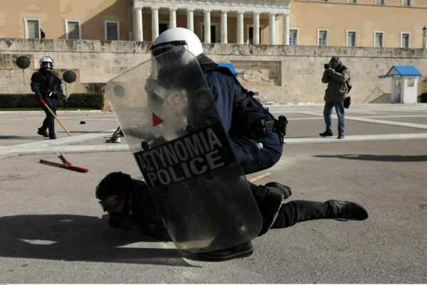 Εξω από τη Βουλή, μερίδα των συγκεντρωμένων συγκρούστηκε με τις αστυνομικές δυνάμεις. Τα ΜΑΤ απάντησαν με χρήση χημικών, ενώ έγιναν και προσαγωγές διαδηλωτών (φωτογραφίες από INTIMEnews – SOOC).