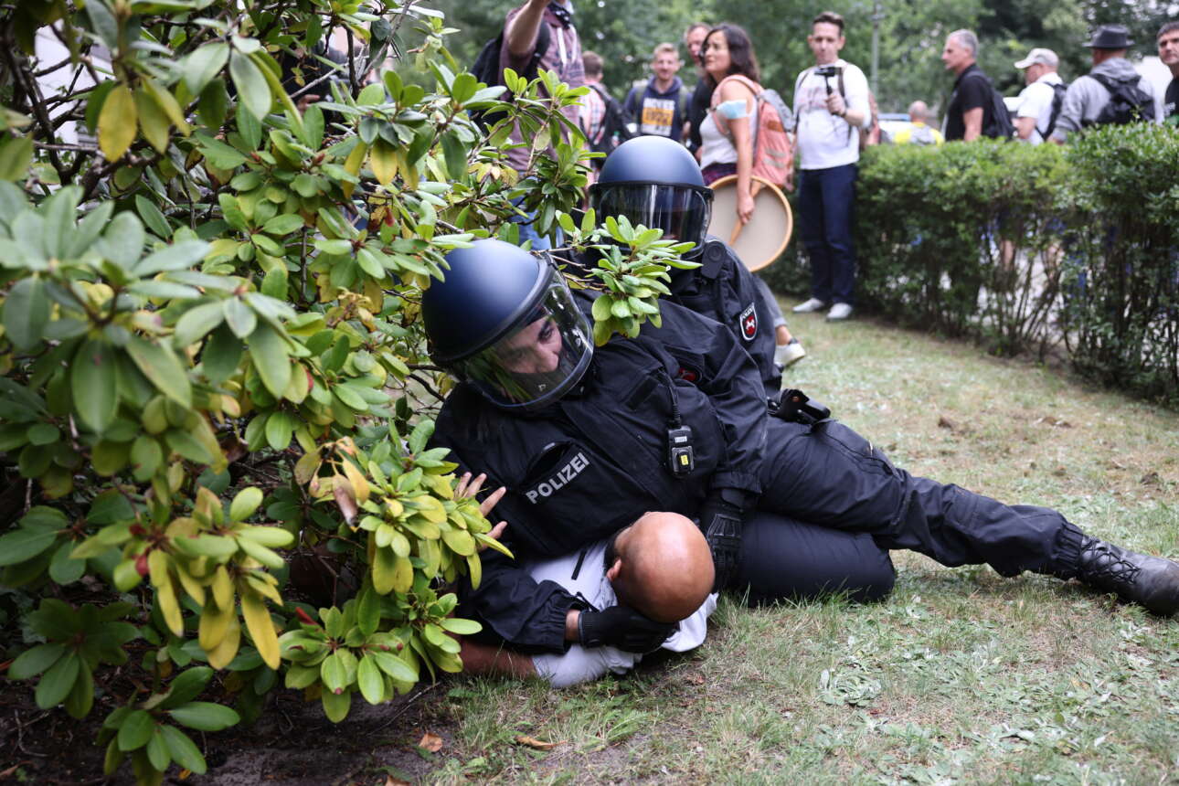 Η αστυνομία ανακοίνωσε πως ορισμένοι διαδηλωτές «επιτέθηκαν» εναντίον αστυνομικών στη συνοικία Σαρλότενμπουργκ, στο δυτικό τμήμα της γερμανικής πρωτεύουσας.
