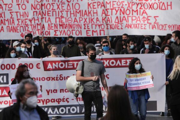 Πλήθος κόσμου (οι πρώτες εκτιμήσεις κάνουν λόγο για 2.000-3.000 διαδηλωτές) κατέβηκε για μία ακόμη φορά στα Προπύλαια, στο συλλαλητήριο κατά του νομοσχεδίου Κεραμέως – Χρυσοχοΐδη για τις αλλαγές στην Τριτοβάθμια Εκπαίδευση.