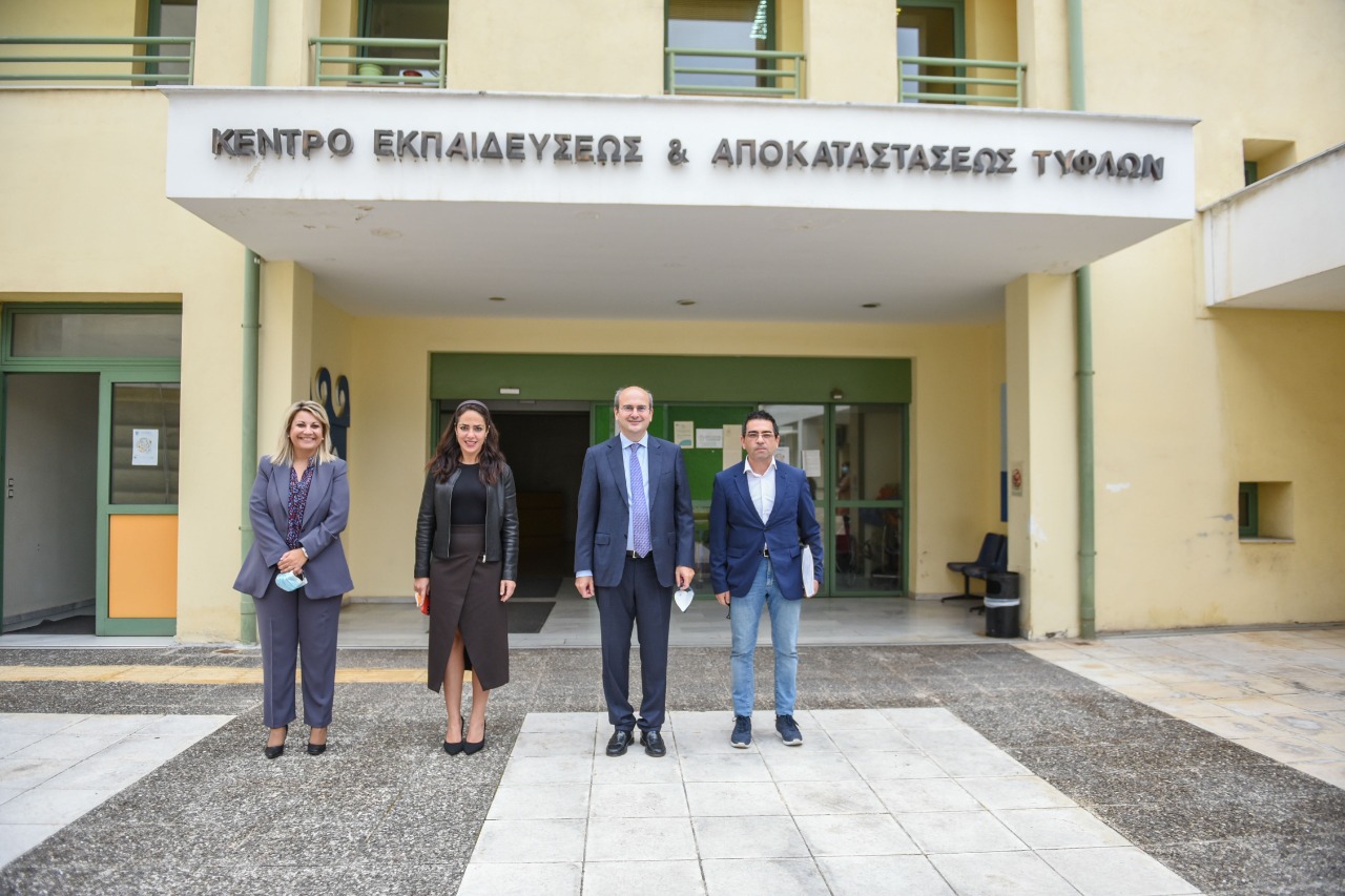 Επίσκεψη Χατζηδάκη στο Κέντρο Εκπαίδευσης και Αποκατάστασης Τυφλών και το Ειδικό Δημοτικό Σχολείο Τυφλών Καλλιθέας
