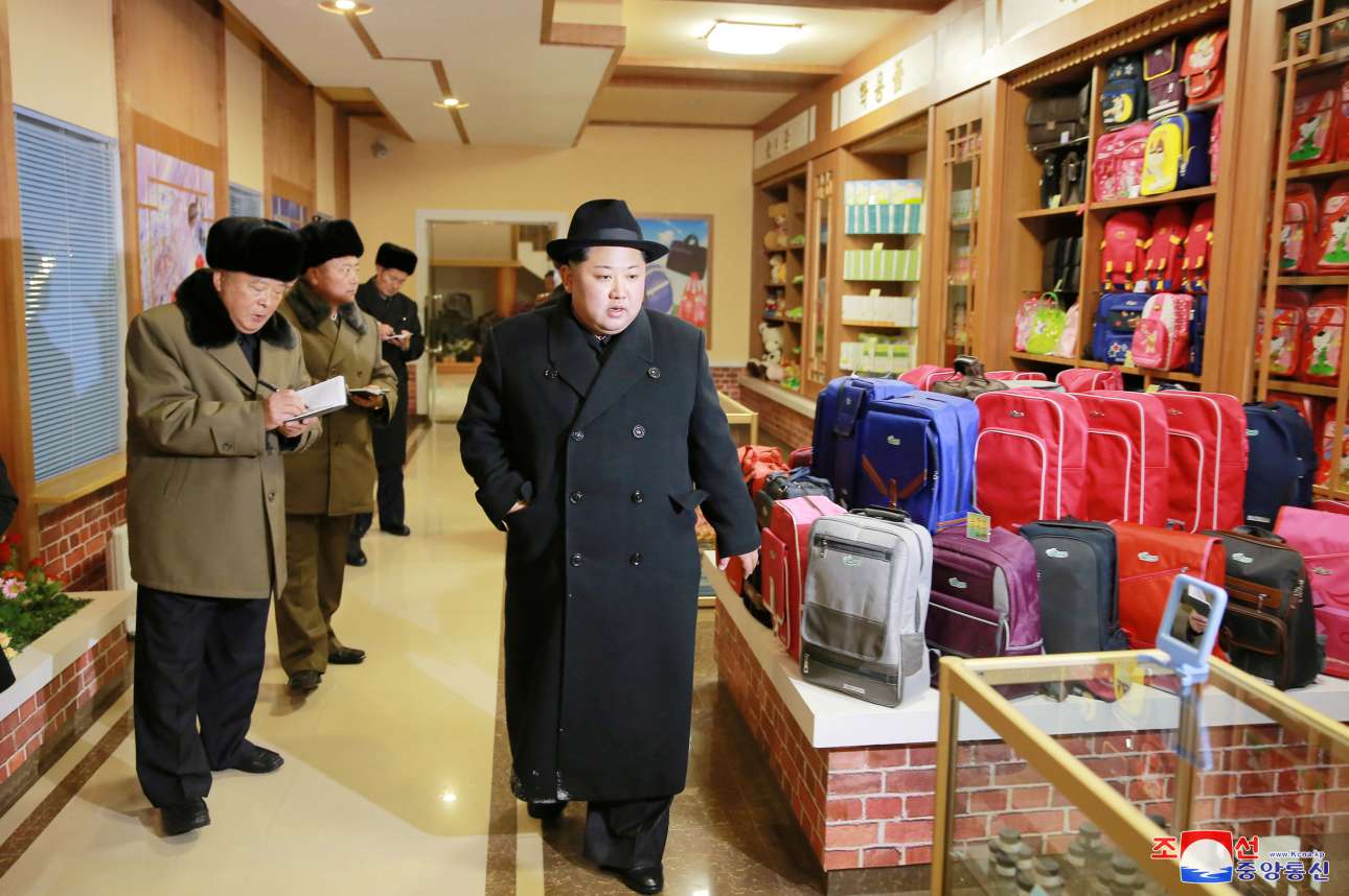 Χαρούμενος όπως πάντα με τη συνήθη κουστωδία αξιωματούχων με μπλοκάκια στα χέρια, ο Κιμ εμφανίζεται σε σειρά φωτογραφιών που έδωσε στη δημοσιότητα το καθεστώς να επιθεωρεί χειμερινές εγκαταστάσεις.