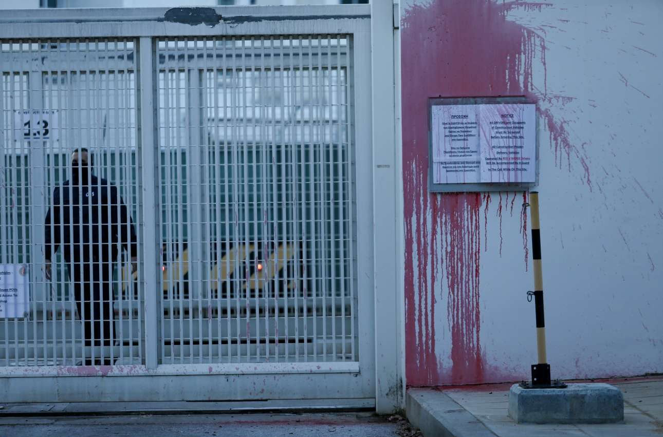 Ομάδα ατόμων που επέβαιναν σε μοτοσικλέτες πέταξε στην είσοδο του χώρου στάθμευσης της πρεσβείας, στη συμβολή των οδών Δορυλαίου και Μακεδόνων, μπαλόνια και μπουκάλια με μπογιά με αποτέλεσμα να προκαλέσουν απλά φθορές στον τοίχο.