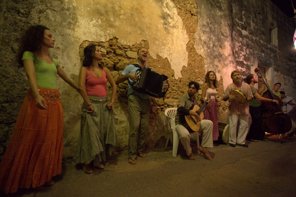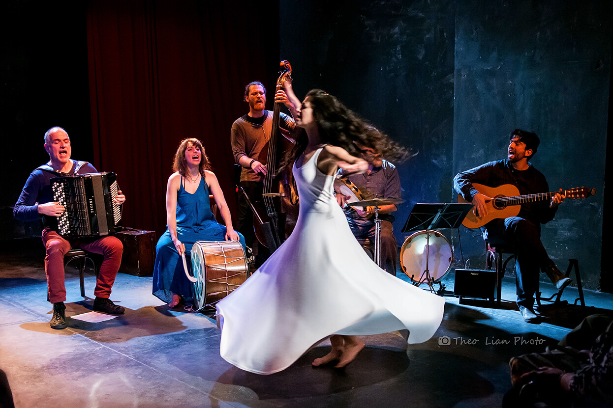 Πέντε μουσικοί και οκτώ χορευτές (με το χορευτικό σύνολο Ballo del Mondo) συνθέτουν την πρωτότυπη παράσταση, «εμπνευσμένη από το πολιτισμικό τοπίο, τη μουσική, τα τραγούδια και τους χορούς των ελληνόφωνων περιοχών του ιταλικού Νότου».
