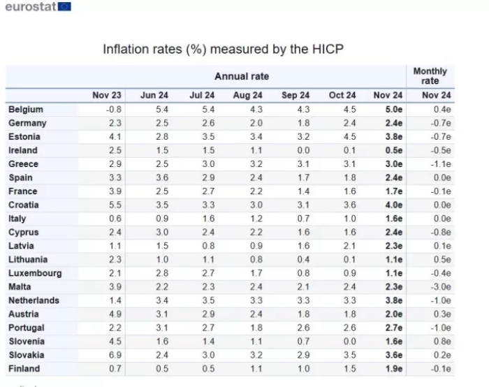 Με βάση τα στοιχεία της Eurostat, ο πληθωρισμός φρέναρε στη χώρα μας τον Νοέμβριο (από 3,1% τον Οκτώβριο), ενώ, αντίθετα, στα 20 κράτη-μέλη του ευρώ «τσίμπησε» από τον Οκτώβριο που ήταν στο 2%.