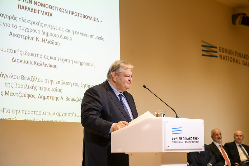 Ο Ευαγγελος Βενιζέλος στο βήμα της εκδήλωσης στην Εθνική Πινακοθήκη