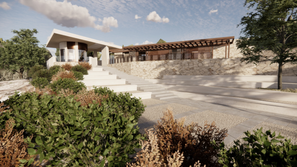- Δημιουργία πλησίον της εισόδου, νέου υπαίθριου χώρου συγκέντρωσης, με βαθμίδες και θέαση στο ανάκτορο.