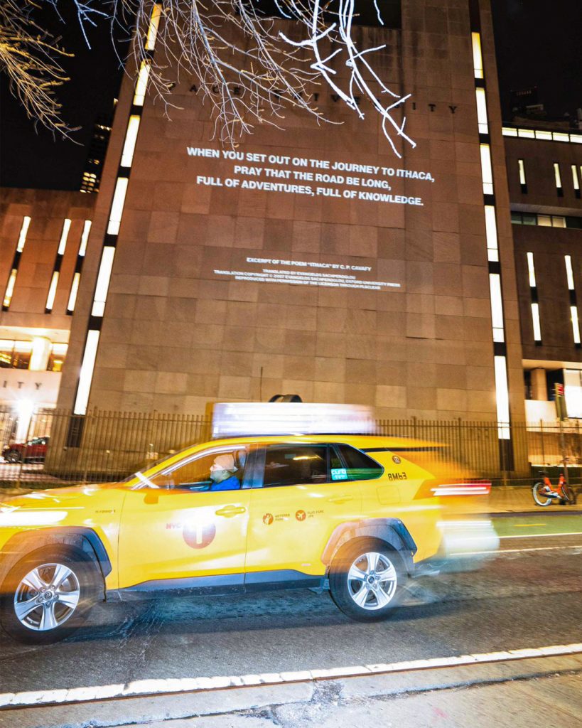 Από το National Sawdust στο Ουίλαμσμπεργκ του Μπρούκλιν έως το Κέντρο Ροκφέλερ στην καρδιά του Μανχάταν, από το ONX Studio, τον «επιταχυντή» καριέρας του Ιδρύματος Ωνάση που εστιάζει στις ψηφιακές τεχνολογίες και την καλλιτεχνική δημιουργία στην 5η Λεωφόρο έως την εκκλησία του Αγίου Μάρκου και το New Museum στο Μπάουερι, από τα βιβλιοπωλεία McNally Jackson σε διάφορα σημεία της πόλης έως το Πανεπιστήμιο Columbia στο Χάρλεμ, μεταξύ άλλων, το «Archive of Desire» επιδιώκει να μαγέψει το κοινό της Νέας Υόρκης, φέρνοντας την ποίηση του Καβάφη στην καθημερινότητά τους.