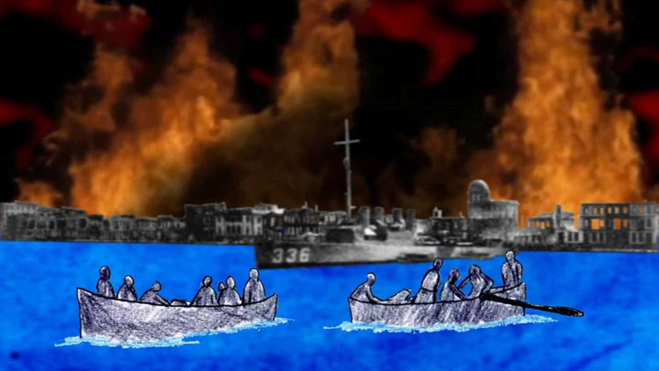 Αν εμμένουμε στις ημερομηνίες της Καταστροφής, μια 15λεπτη ταινία animation, που διαγωνίζεται στο φετινό Φεστιβάλ Καστελορίζου, με την υπογραφή του σκηνοθέτη Ζάχου Σαμολαδά, υπό τον τίτλο «Tokei Maru», προσπαθεί να φωτίσει μια άγνωστη ανθρώπινη ιστορία, με φόντο τις φλόγες της Σμύρνης, το Σεπτέμβριο του 1922. Ο ήρωας αυτής της συγκινητικής ιστορίας παραμένει – ύστερα από χρόνια ιστορικής έρευνας – άγνωστος, ακόμη. Μόνον ως «Κύριος Λου» αναφέρεται σε ένα δημοσίευμα της εφημερίδας «Αθήναι».