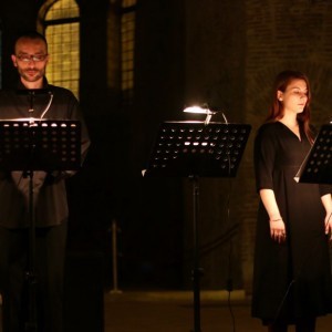 Ανεβαίνουν οι ηθοποιοί στα αναλόγια, ενώ ένας κοντραμπασίστας αρχίζει να παίζει χαμηλά, υποβλητικά. Καθόμουν μόλις στην τρίτη σειρά αλλά ούτε άκουγα ούτε έβλεπα. Μάλιστα, ενώ τα αναλόγια ήταν πέντε, από τις φωτογραφίες συνειδητοποίησα ότι οι ποιητές ήταν τέσσερις. Ο κόσμος αρχίζει, από την πρώτη στιγμή, να φεύγει. Η πλάκα ήταν ότι οι αποχωρήσεις του κοινού έμοιαζαν ως μέρος performance: προκειμένου να φύγουν, κάποιοι έπρεπε να περάσουν περπατώντας αθόρυβα πίσω από τους ποιητές και τον κοντραμπασίστα, ενώ το άνοιγμα και το κλείσιμο της μεγάλης μεταλλικής πόρτας αντηχούσε σε όλο το χώρο. Οι υπόλοιποι που μείναμε δεν τολμούσαμε να κουνηθούμε, γιατί η παραμικρή κίνηση προκαλούσε θόρυβο και ενόχληση. Πού και πού έφταναν κάποιες νότες από το κοντραμπάσο, μια φωνή ηχογραφημένη και σκόρπιοι στίχοι: «Όμως η περιστέρα μου είναι μία», «Όμορφη που έγινες, γλυκιά που έγινες», «Ο τράχηλός σου πύργος φιλντισένιος», «Και να ‘ναι τα βυζιά σου σαν τα τσαμπιά στ’ αμπέλι, τα λόγια σου σαν το καλό κρασί». Ασμα ασμάτων είναι αυτό, δυνατό, τολμηρό, μυθικό.
