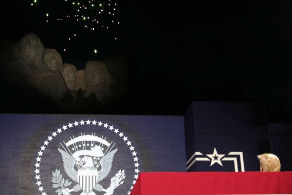 Ο Τραμπ δεν είπε λέξη για την επιδημία. Προσέφερε στον εαυτό του μια σειρά από στιγμιότυπα κάτω από το εμβληματικό όρος όπου έχουν σμιλευτεί τα πρόσωπα τεσσάρων σπουδαίων προέδρων (από τον πρώτο Τζορτζ Ουάσινγκτον και τον συντάκτη της Διακήρυξης της Ανεξαρτησίας, Τόμας Τζέφερσον, ως τον απελευθερωτή των σκλάβων Αβραάμ Λίνκολν και τον θεμελιωτή των ΗΠΑ ως υπερδύναμη Θίοντορ Ρούσβελτ), σε μια κραυγαλέα απόπειρα να ταυτιστεί ιστορικά μαζί τους —οποία ύβρις!