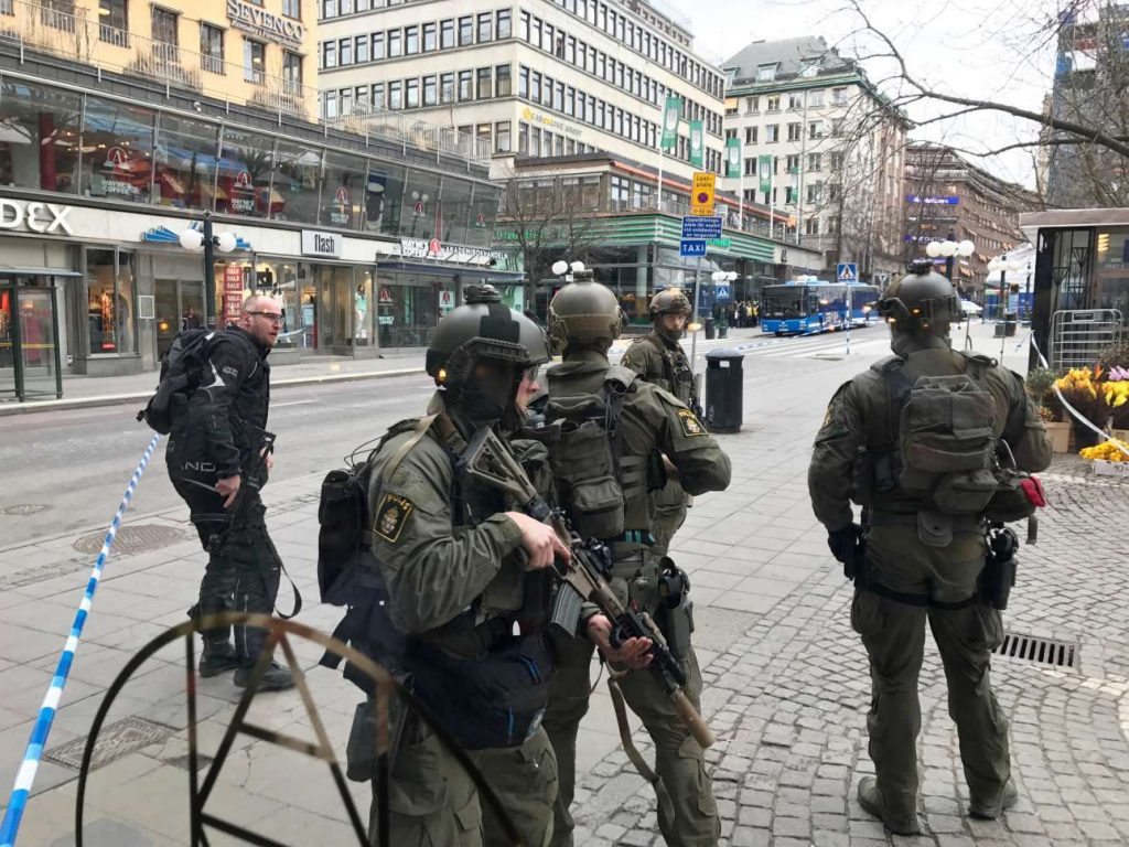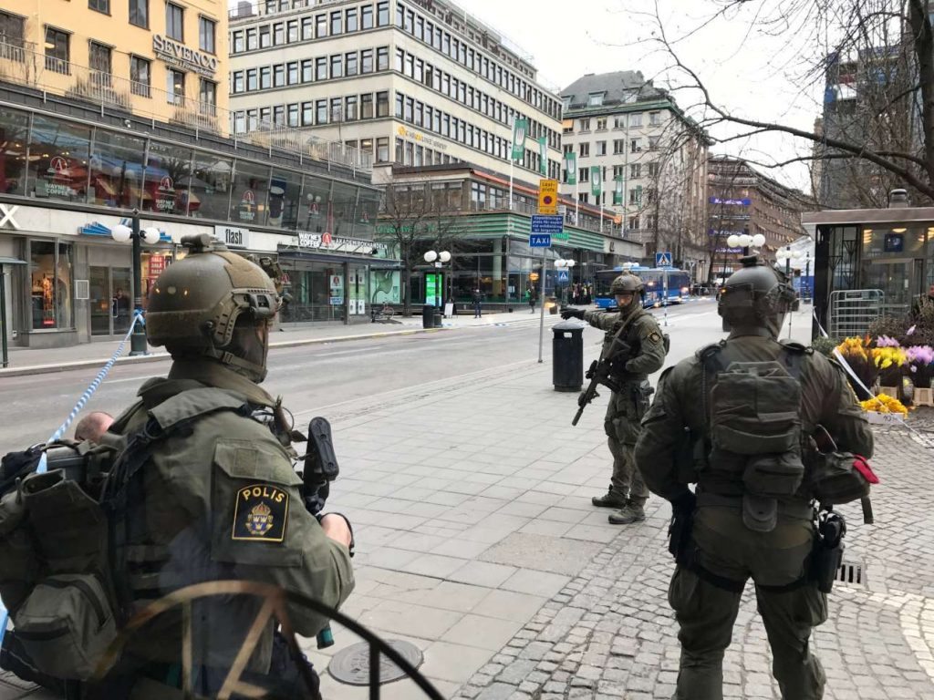 Το μεσημέρι της Παρασκευής ένα φορτηγό εισέβαλε σε πεζόδρομο στο κέντρο της Στοκχόλμης, έπεσε πάνω στο συγκεντρωμένο πλήθος και παρέσυρε ανθρώπους. Η σουηδική αστυνομία ανακοίνωσε ακόμη ότι το φορτηγό ήταν παγιδευμένο με εκρηκτικά.